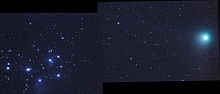In astronomy, the Pleiades (pron.: / ˈ p l aɪ . ə d iː z / or / ˈ p l iː . ə d iː z /), or Seven Sisters ( Messier object 45 or M45), is an open star cluster containing middle-aged hot B-type stars located in the constellation of Taurus. It is among the nearest star clusters to Earth and is the cluster most obvious to the naked eye in the night sky. The name Pleiades comes from Greek mythology; the celestial entity has several meanings in different cultures and traditions.