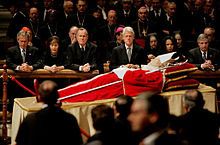 The death of the pontiff set in motion rituals and traditions dating back to medieval times. The Rite of Visitation took place from 4 to 7 April at St. Peter's Basilica. The Testament of Pope John Paul II published on 7 April revealed that the pontiff contemplated being buried in his native Poland but left the final decision to The College of Cardinals, which in passing, preferred burial beneath St. Peter's Basilica, honouring the pontiff's request to be placed "in bare earth". The Mass of Requiem on 8 April was said to have set world records both for attendance and number of heads of state present at a funeral. (See: List of Dignitaries). It was the single largest gathering of heads of state in history, surpassing the funerals of Winston Churchill (1965) and Josip Broz Tito (1980). Four kings, five queens, at least 70 presidents and prime ministers, and more than 14 leaders of other religions attended alongside the faithful. It is likely to have been the largest single pilgrimage of Christianity ever, with numbers estimated in excess of four million mourners gathering in Rome. Between 250,000 and 300,000 watched the event from within the Vatican's walls. The Dean of the College of Cardinals, Cardinal Joseph Ratzinger, conducted the ceremony. John Paul II was interred in the grottoes under the basilica, the Tomb of the Popes. He was lowered into a tomb created in the same alcove previously occupied by the remains of Pope John XXIII. The alcove had been empty since Pope John's remains had been moved into the main body of the basilica after his beatification.