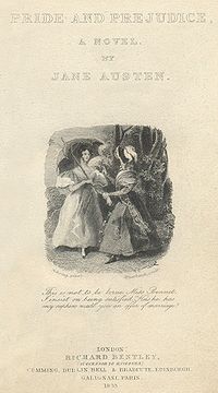 Pride and Prejudice is a novel by Jane Austen, first published in 1813. The story follows the main character Elizabeth Bennet as she deals with issues of manners, upbringing, morality, education and marriage in the society of the landed gentry of early 19th-century England. Elizabeth is the second of five daughters of a country gentleman, living near the fictional town of Meryton in Hertfordshire, near London.