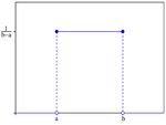- The  continuous uniform distribution on [a,b], where all points in a finite interval are equally likely.