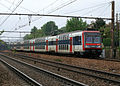 The predominance of suburban SNCF track on the RER network explains why RER trains use overhead line power and run on the left, like SNCF trains (except in Alsace-Moselle), contrary to the Métro where trains use third rail power and run on the right. RER trains run by the two different operators share the same track infrastructure, a practice called interconnection. On the RER, interconnection required the development of specific trains (MI 79 series for Materiel d'Interconnexion 1979, and MI 2N series for Materiel d'Interconnexion à 2 niveaux (double-deck interconnection stock)) capable of operating under both 1.5 kV direct current on the RATP network and 25 kV / 50 Hz alternating current on the SNCF network. The MS 61 series (Matériel Suburbain 1961) can be used only on the 1.5 kV DC network.