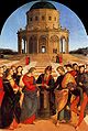 Raffaello Sanzio da Urbino (April 6 or March 28, 1483 – April 6, 1520), better known simply as Raphael, was an Italian painter and architect of the High Renaissance, celebrated for the perfection and grace of his paintings and drawings. Together with Michelangelo and Leonardo da Vinci, he forms the traditional trinity of great masters of that period.