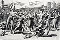 The most important figures were Giulio Romano, a young pupil from Rome (only about twenty-one at Raphael's death), and Gianfrancesco Penni, already a Florentine master. They were left many of Raphael's drawings and other possessions, and to some extent continued the workshop after Raphael's death. Penni did not achieve a personal reputation equal to Giulio's, as after Raphael's death he became Giulio's less-than-equal collaborator in turn for much of his subsequent career. Perino del Vaga, already a master, and Polidoro da Caravaggio, who was supposedly promoted from a labourer carrying building materials on the site, also became notable painters in their own right. Polidoro's partner, Maturino da Firenze, has, like Penni, been overshadowed in subsequent reputation by his partner. Giovanni da Udine had a more independent status, and was responsible for the decorative stucco work and grotesques surrounding the main frescoes. Most of the artists were later scattered, and some killed, by the violent Sack of Rome in 1527. This did however contribute to the diffusion of versions of Raphael's style around Italy and beyond.