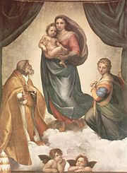 Reynolds was less enthusiastic about Raphael's panel paintings, but the slight sentimentality of these made them enormously popular in the 19th century:"We have been familiar with them from childhood onwards, through a far greater mass of reproductions than any other artist in the world has ever had..." wrote Wölfflin, who was born in 1862, of Raphael's Madonnas.