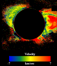 In nearby objects (within our Milky Way galaxy) observed redshifts are almost always related to the line of sight velocities associated with the objects being observed. Observations of such redshifts and blue shifts have enabled astronomers to measure velocities and parametrize the masses of the orbiting stars in spectroscopic binaries, a method first employed in 1868 by British astronomer William Huggins. Similarly, small redshifts and blue shifts detected in the spectroscopic measurements of individual stars are one way astronomers have been able to diagnose and measure the presence and characteristics of planetary systems around other stars. Measurements of redshifts to fine detail are used in helioseismology to determine the precise movements of the photosphere of the Sun. Redshifts have also been used to make the first measurements of the rotation rates of planets, velocities of interstellar clouds, the rotation of galaxies, and the dynamics of accretion onto neutron stars and black holes which exhibit both Doppler and gravitational redshifts. Additionally, the temperatures of various emitting and absorbing objects can be obtained by measuring Doppler broadening — effectively redshifts and blue shifts over a single emission or absorption line. By measuring the broadening and shifts of the 21-centimeter hydrogen line in different directions, astronomers have been able to measure the recessional velocities of interstellar gas, which in turn reveals the rotation curve of our Milky Way. Similar measurements have been performed on other galaxies, such as Andromeda. As a diagnostic tool, redshift measurements are one of the most important spectroscopic measurements made in astronomy.