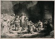 • Christ Healing the Sick ( Etching c. 1643, also known as The Hundred Guilders Print) , nicknamed for the huge sum paid for it