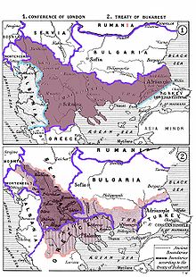 The division of the region of Macedonia after the Balkan Wars according to the Treaty of Bucharest