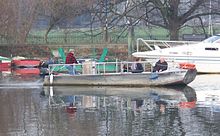 Before bridges were built, the main means of crossing the river was by ferry. A significant number of ferries were provided specifically for navigation purposes. When the towpath changed sides, it was necessary to take the towing horse and its driver across the river. This was no longer necessary when barges were powered by steam. Some ferries still operate on the river. The Woolwich Ferry carries cars and passengers across the river in the Thames Gateway and links the North Circular and South Circular roads. Upstream are smaller pedestrian ferries, for example Hampton Ferry and Shepperton to Weybridge Ferry the last being the only non-permanent crossing that remains on the Thames Path.