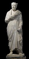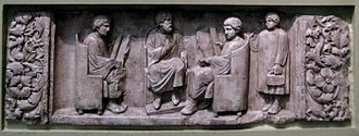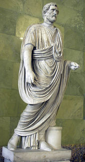 In the 2nd century, emperors and men of status are often portrayed wearing the pallium, an originally Greek mantle ( himation) folded tightly around the body. Women are also portrayed in the pallium. Tertullian considered the pallium an appropriate garment both for Christians, in contrast to the toga, and for educated people, since it was associated with philosophers. By the 4th century, the toga had been more or less replaced by the pallium as a garment that embodied social unity.