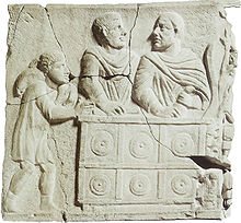 In upperclass households, the evening meal ( cena) had important social functions. The ideal number of guests for a dinner party ( convivium, "life-sharing" or "a living together") was nine. Guests were entertained in a finely decorated dining room ( triclinium), often with a view of the peristyle garden. Diners lounged on couches, leaning on the left elbow. By the late Republic, if not earlier, women dined, reclined, and drank wine along with men.
