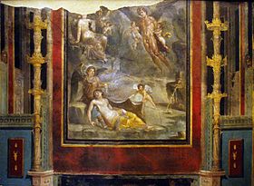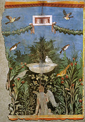 Much of what is known of Roman painting is based on the interior decoration of private homes, particularly as preserved at Pompeii and Herculaneum by the eruption of Vesuvius in 79 AD. In addition to decorative borders and panels with geometric or vegetative motifs, wall painting depicts scenes from mythology and the theatre, landscapes and gardens, recreation and spectacles, work and everyday life, and frank pornography. Birds, animals, and marine life are often depicted with careful attention to realistic detail.