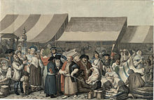 A busy market scene in Transylvania, 1818, from the Bibilioteca Academiei Române.