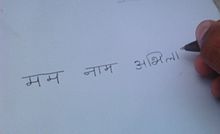 ![]() The word Sanskrit (संस्कृतम्) written in Devanagari.  |