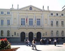The Cathedral on the central square ( Plaza de Armas) is a sight that ranks as high as the Palacio de La Moneda, the Presidential Palace. The original building was built between 1784 and 1805, and architect Joaquín Toesca was in charge of its construction. Other buildings surrounding the Plaza de Armas are the Central Post Office Building, which was finished in 1882, and the Palacio de la Real Audiencia de Santiago, built between 1804 and 1807. It houses the Chilean National History Museum, with 12,000 objects that can be exhibited. On the southeast corner of the square stands the green cast-iron Commercial Edwards building, which was built in 1893. East of that is the colonial building of the Casa Colorada (1769), which houses the Museum of Santiago. Close by is the Municipal Theatre of Santiago, which was built in 1857 by the French architect Brunet of Edward Baines. It was badly damaged by an earthquake in 1906. Not far from the theatre is the Subercaseaux Mansion and the National Library, one of the largest libraries of South America.