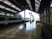 The city became the main hub of the national railway system. The first railroad reached the city on 14 September 1857, at the Santiago Estación Central railway station. Under construction at the time, the station would be opened permanently in 1884. During those years, railways connected the city to Valparaíso as well as regions in the north and south of Chile. The streets of Santiago were paved and by 1875 and there were 1,107 cars in the city, while 45,000 people used tram services on a daily basis.