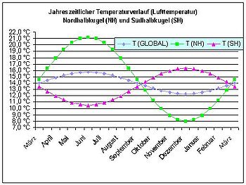 The cycle of seasons in the polar and temperate zones of one hemisphere is opposite to that in the other. When it is summer in the Northern Hemisphere, it is winter in the Southern Hemisphere, and vice versa.