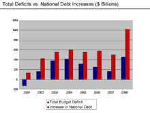 U.S. deficit and debt increases 2001–2008.