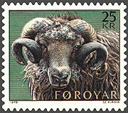 A 1979 Faroese stamp by Czesław Słania. Sheep are the heraldic animal of the Faroe Islands.
