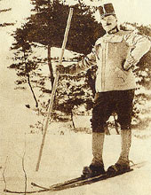 Theodor von Lerch, an Austrian major, teaching skiing to Japanese army as the first experience to Japan at Jōetsu, Niigata on 12 January 1911.