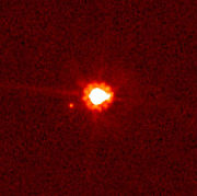 There are relatively few stars within ten light years (95 trillion km) of the Sun. The closest is the triple star system Alpha Centauri, which is about 4.4 light years away. Alpha Centauri A and B are a closely tied pair of Sun-like stars, while the small red dwarf Alpha Centauri C (also known as Proxima Centauri) orbits the pair at a distance of 0.2 light years. The stars next closest to the Sun are the red dwarfs Barnard's Star (at 5.9 light years), Wolf 359 (7.8 light years) and Lalande 21185 (8.3 light years). The largest star within ten light years is Sirius, a bright main sequence star roughly twice the Sun's mass and orbited by a white dwarf called Sirius B. It lies 8.6 light years away. The remaining systems within ten light years are the binary red dwarf system Luyten 726-8 (8.7 light years) and the solitary red dwarf Ross 154 (9.7 light years). Our closest solitary sunlike star is Tau Ceti, which lies 11.9 light years away. It has roughly 80 percent the Sun's mass, but only 60 percent its luminosity. The closest known extrasolar planet to the Sun lies around the star Epsilon Eridani, a star slightly dimmer and redder than the Sun, which lies 10.5 light years away. Its one confirmed planet, Epsilon Eridani b, is roughly 1.5 times Jupiter's mass and orbits its star every 6.9 years.