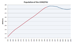 The first fifty years of the 20th century in tsarist Russia and the Soviet Union were marked by a succession of disasters, each accompanied by large–scale population losses. Excess deaths over the course of World War I and the Russian Civil War (including the postwar famine) amounted to a combined total of 18 million, some 10 million in the 1930s, and more than 26 million in 1941–5. The postwar Soviet population was 45 to 50 million smaller than it would have been if pre-war demographic growth had continued.