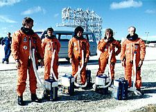 |  Francis R. Scobee, Commander Michael J. Smith, Pilot Ronald McNair, Mission Specialist Ellison Onizuka, Mission Specialist Judith Resnik, Mission Specialist Greg Jarvis, Payload Specialist Christa McAuliffe, Payload Specialist  |