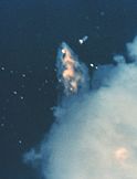 ![]() Space Shuttle Challenger's smoke plume after its in-flight breakup, resulting in its crash and the deaths of all seven crew members.  |