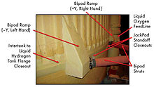 The Left Bipod Foam Ramp is an approximately three-foot (one-meter) aerodynamic component made entirely of foam. The foam, not normally considered to be a structural material, is required to bear some aerodynamic loads. Because of these special requirements, the casting-in-place and curing of the ramps may be performed only by a senior technician. The shuttle's main fuel tank is covered in foam as an insulator, to avoid ice forming on it when full of liquid hydrogen and oxygen, which itself could damage the shuttle when shed during lift-off. The bipod ramp (having left and right sides) was originally designed to reduce aerodynamic stresses around the bipod attachment points at the external tank, but it was proven unnecessary in the wake of the accident and was removed from the external tank design for tanks flown after STS-107 (another foam ramp along the liquid oxygen line was also later removed from the tank design to eliminate it as a foam debris source, after complex analysis and tests proved this change safe).