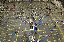 Grid on the floor of the Reusable Launch Vehicle Hangar where workers in the field bring in pieces of Columbia's debris. The Columbia Reconstruction Project Team attempted to reconstruct the bottom of the orbiter as part of the investigation into the accident.