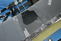 Close-up of the Left Bipod Foam Ramp that broke off and damaged the Shuttle wing.