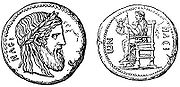 The seated statue, some 12 metres (39 feet) tall, occupied the whole width of the aisle of the temple built to house it. "It seems that if Zeus were to stand up," the geographer Strabo noted early in the 1st century BC, "he would unroof the temple." Zeus was a chryselephantine sculpture, made of ivory and accented with gold plating. No copy, in marble or bronze, has survived, though there are recognizable but approximate versions on coins of Elis and Roman coins and engraved gems but a very detailed description of the sculpture and the throne was recorded by the traveller Pausanias, in the second century AD. In the sculpture, he was wreathed with shoots of the olive and seated on a magnificent throne of cedarwood, inlaid with ivory, gold, ebony, and precious stones. In Zeus' right hand there was a small statue of crowned Nike, goddess of victory, also chryselephantine, who was, and in his left hand, a sceptre inlaid with metals, on which an eagle perched. Plutarch, in his Life of the Roman general Aemilius Paulus, records that the victor over Macedon “was moved to his soul, as if he had beheld the god in person,” while the Greek orator Dio Chrysostom declared that a single glimpse of the statue would make a man forget his earthly troubles.