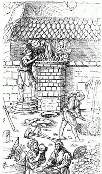 Since the 17th century the first step in European steel production has been the smelting of iron ore into pig iron in a blast furnace. Originally using charcoal, modern methods use coke, which has proven more economical.