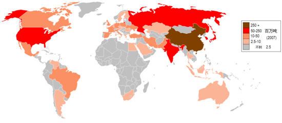In 2005, the British Geological Survey stated China was the top steel producer with about one-third of the world share; Japan, Russia, and the US followed respectively.