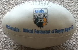 Before the expansion to the Super 14, the Super 12 used a logo in the shape of a shield, which had the sponsors name at the top, and then the words "Rugby" and "Super 12". The lower half of the logo used three different coloured stripes, green, black and gold, the respective colours of the national teams of South Africa, New Zealand and Australia.