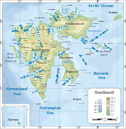 Coastlines of the Svalbard islands (listed from largest island to smallest) show the extensive variability characteristic of glacial formation: