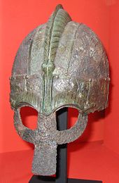 Vendel era helmet, at the Swedish Museum of National Antiquities.
