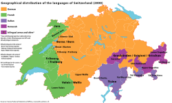 The German spoken in Switzerland is predominantly a group of Alemannic dialects collectively known as Swiss German, but written communication typically use Swiss Standard German, while the majority of radio and TV broadcast is now in Swiss German as well ( diglossic usage of a language). Similarly, there are some dialects of Franco-Provençal in rural communities in the French speaking part, known as "Suisse romande", called Genevois, Vaudois, Valaisan, Jurassien, Fribourgeois, Neuchâtelois, and in the Italian speaking area, Ticinese (a dialect of Lombard). Moreover, the official languages (German, French and Italian) borrow some terms not understood outside Switzerland, i.e. terms from other languages (German Billette from French), from similar term in another language (Italian azione used not only as act but also as discount from German Aktion). Learning one of the other national languages at school is obligatory for all Swiss, so many Swiss are supposed to be at least bilingual, especially those belonging to minorities.
