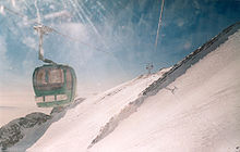 Here, one must first ride the eight kilometre (five mile) long gondola lift which covers a huge vertical and is probably the longest line in the world. The 7th station has three slopes. The resort's longest slope is the south side U shaped slope which goes from the 7th station to 5th station. The other two slopes are located on the north side of the 7th station. Here, there are two parallel chair ski lifts that go up to 3,900 metres (12,795 ft) near Tochal's peak (at 4,000 m/13,125 ft), rising higher than the gondola 7th station. This altitude is higher than any of the European resorts.