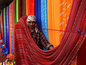 Textiles are often dyed, with fabrics available in almost every colour. The dying process often requires several dozen gallons of water for each pound of clothing. Coloured designs in textiles can be created by weaving together fibres of different colours ( tartan or Uzbek Ikat), adding coloured stitches to finished fabric ( embroidery), creating patterns by resist dyeing methods, tying off areas of cloth and dyeing the rest ( tie-dyeing), or drawing wax designs on cloth and dyeing in between them ( batik), or using various printing processes on finished fabric. Woodblock printing, still used in India and elsewhere today, is the oldest of these dating back to at least 220CE in China. Textiles are also sometimes bleached, making the textile pale or white.