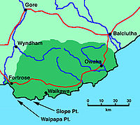 | Main towns and settlements: | Owaka, Waikawa, Kaka Point, Fortrose |