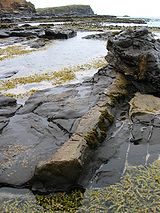 Curio Bay features the petrified remains of a forest 160 million years old. This is a remnant of the subtropical woodland that once covered the region, only to become submerged by the sea. The fossilised remnants of trees closely related to modern Kauri and Norfolk Pine can be seen here.