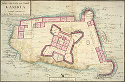 During the late-17th century and throughout the 18th century, the British Empire and the French Empire struggled continually for political and commercial supremacy in the regions of the Senegal River and the Gambia River. The British Empire occupied the Gambia when an expedition led by Augustus Keppel landed there—following the Capture of Senegal in 1758. The 1783 First Treaty of Versailles gave Great Britain possession of the Gambia River, but the French retained a tiny enclave at Albreda on the river's north bank. This was finally ceded to the United Kingdom in 1856.