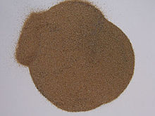 Thorium has been extracted chiefly from monazite through a complex multi-stage process. The monazite sand is dissolved in hot concentrated sulfuric acid (H2SO4). Thorium is extracted as an insoluble residue into an organic phase containing an amine. Next it is separated or stripped using an ion such as nitrate, chloride, hydroxide, or carbonate, returning the thorium to an aqueous phase. Finally, the thorium is precipitated and collected.