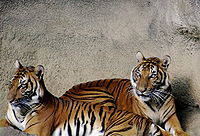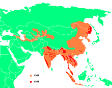 | Tiger's historic range in about 1850 (pale yellow) and in 2006 (in green). | |