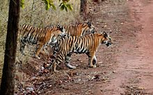 | A Bengal tiger (P. tigris tigris) in India's Bandhavgarh National Park | |
