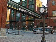 Toronto became the largest alcohol distillation (in particular spirits) centre in North America, the Gooderham and Worts Distillery operations became the world's largest whiskey factory by the 1860s. A preserved section of this once dominant local industry remains in the Distillery District, the harbour allowed for sure access of grain and sugar imports used in processing. Expanding port and rail facilities brought in Northern Timber for export and imported Pennsylvania coal, industry dominated the waterfront for the next 100 years.