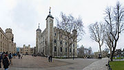 The White Tower is situated in the Inner Ward, defended by a massive curtain wall, which has thirteen towers:
