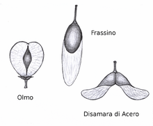 For a tree seeding to grow into an adult tree it needs light and space, if seeds only fell straight to the ground, competition among the concentrated saplings and the shade of the parent would likely prevent it from flourishing. Many seeds such as birch are small and have papery wings to aid dispersal by the wind. Ash trees and maples have larger seeds with blade shaped wings which spiral down to the ground when released. The kapok tree has cottony threads to catch the breeze. The flame tree does not rely on fire but shoots its seeds through the air when the two sides of its long pods crack apart explosively on drying. The miniature cone-like catkins of Alder trees produce seeds that contain small droplets of oil that help disperse the seeds on the surface of water. Mangroves often grow in water and some species have propagules, which are buoyant fruits with seeds that start germinating before becoming detached from the parent tree. These float on the water and may become lodged on emerging mudbanks and successfully take root. Other seeds, such as apple pips and plum stones, have fleshy receptacles and smaller fruits like hawthorns have seeds enclosed in edible tissue; birds and animals eat the fruits and the seeds are either discarded or are consumed and pass through the gut to be deposited in the animal's droppings well away from the parent tree. In some cases, germination is improved by being processed in this way. Nuts and other large seeds are gathered by animals that hide in caches any not immediately consumed. Many of these caches are never revisited, the nut-casing softens with rain and frost and the seed germinates in the spring. Pine cones may be hoarded in a similar way by red squirrels, and grizzly bears raiding the caches may also help to disperse the seed.