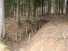 While trenches have often been dug as defensive measures, in the pre-firearm era, they were mainly a type of hindrance for an attacker of a fortified location, such as the ditch (or moat) around a castle. An early example of this can be seen in the Battle of the Trench.