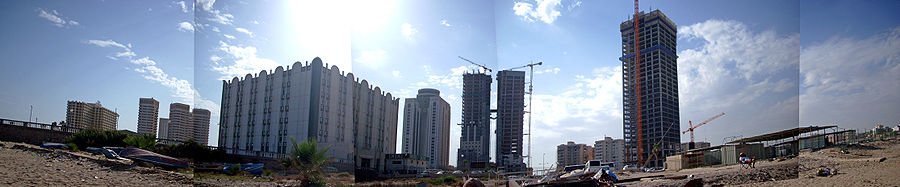 | Top: That El Emad Towers, Middle: Green Square, Bottom left: Marcus Aurelius Arch, Bottom right: Souq al-Mushir – Tripoli Medina. | |||